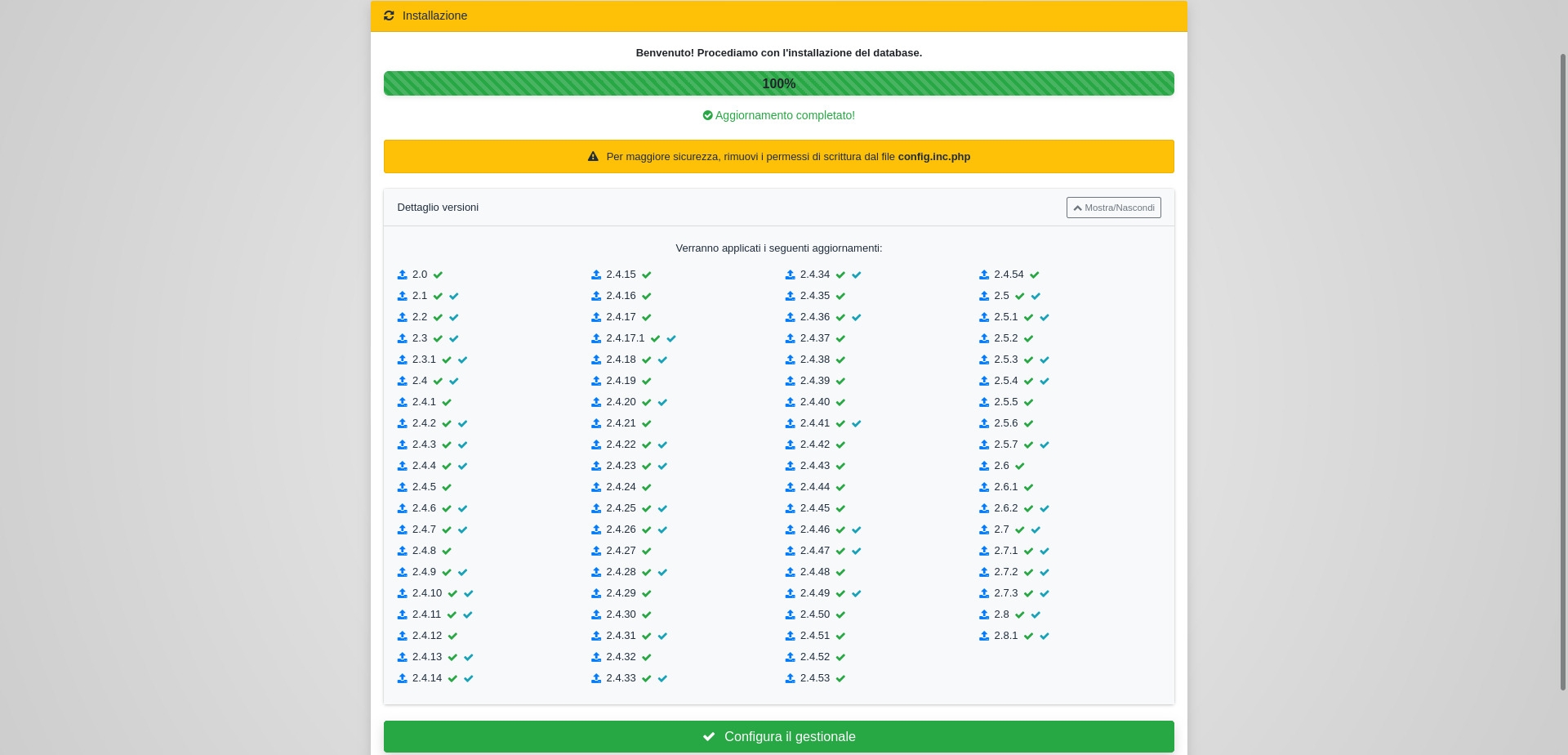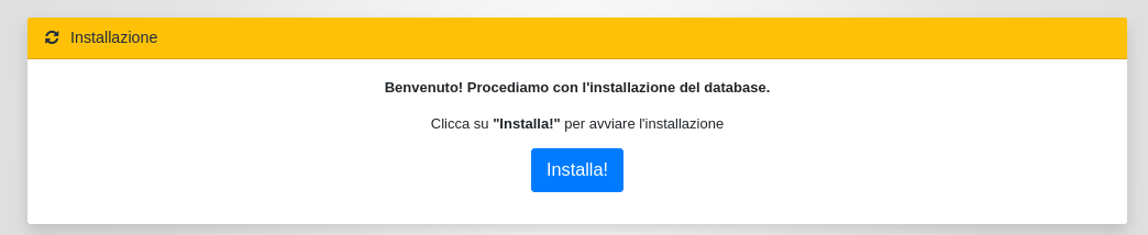 Se le credenziali inserite sono corrette, dopo aver cliccato su Installa si verrà reindirizzati alla procedura automatica di installazione del database.