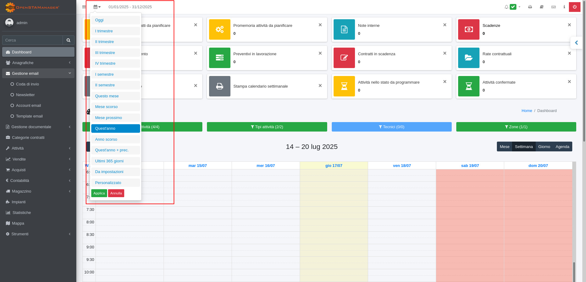 OpenSTAManager presenta un'interfaccia generale piuttosto chiara, basata su strutture comuni e di semplice utilizzo.