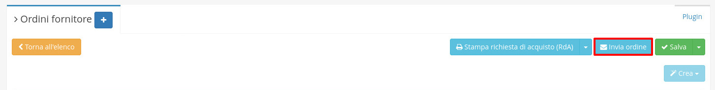 Dalla schermata di dettaglio di un ordine fornitore è possibile procedere a inviarlo via mail al fornitore.