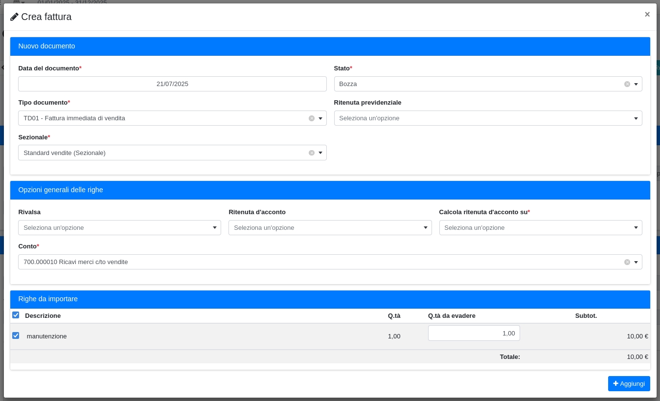 Nell'ordine fornitore deve essere presente almeno una riga, e lo stato deve essere impostato su Accettato.