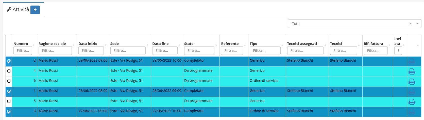 Guida alle azioni aggiuntive del modulo Attività di OpenSTAManager