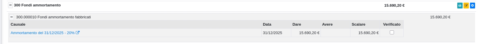 Cliccando su Applica ammortamento, sarà ora possibile visualizzare il bene ammortizzato da piano dei conti, nel conto precedentemente selezionato: