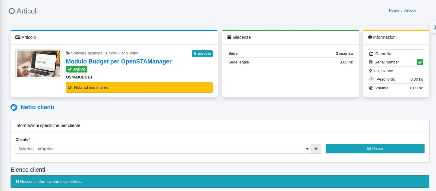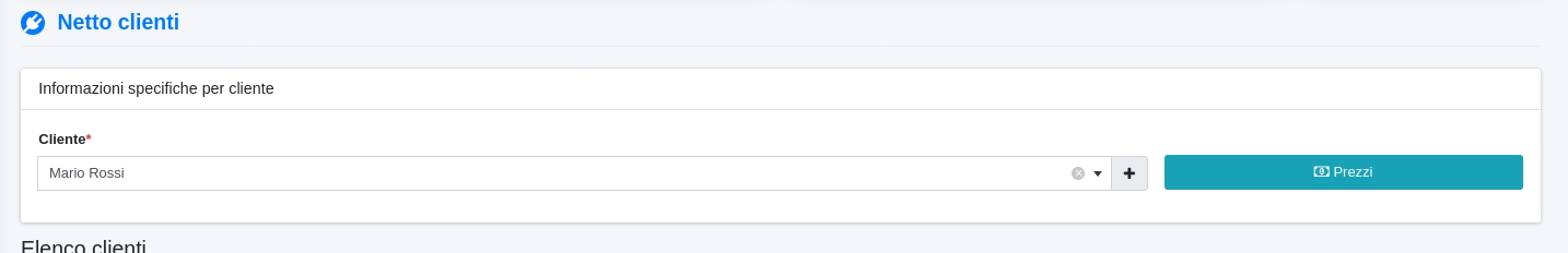 Per aggiungere un nuovo listino cliente si deve selezionare un cliente e cliccare su Prezzi.
