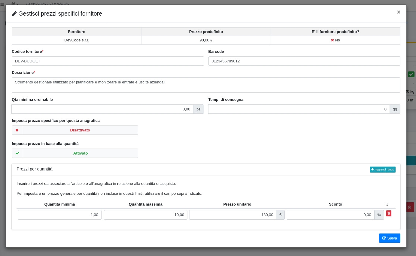 Prezzo specifico in base alle quantità