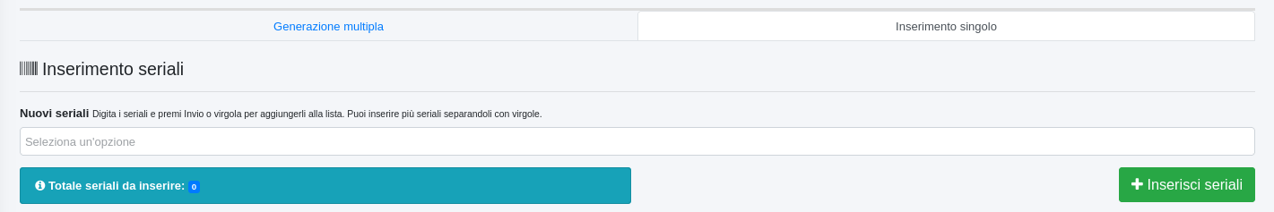 E' possibile inserire seriali multipli, specificando il valore iniziale e finale, o singoli: