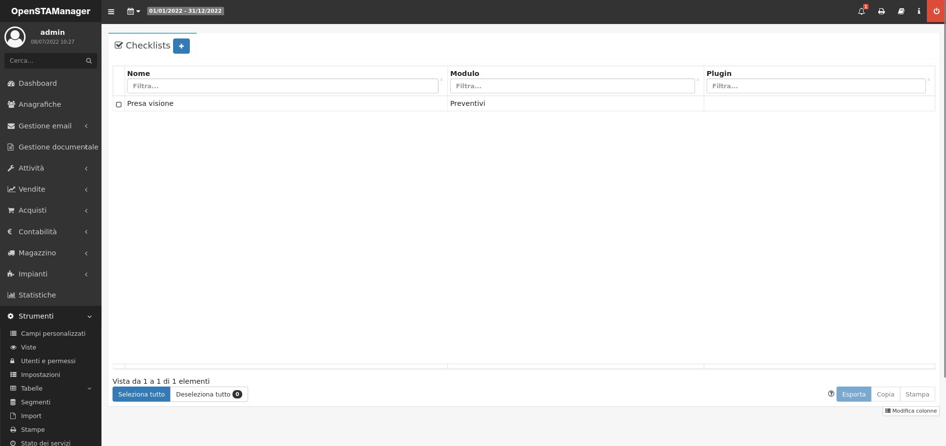 Per richiamare il template di una checklist in un determinato modulo sarà sufficiente accedere al plugin Checklist e richiamarla tramite l'apposito pulsante: