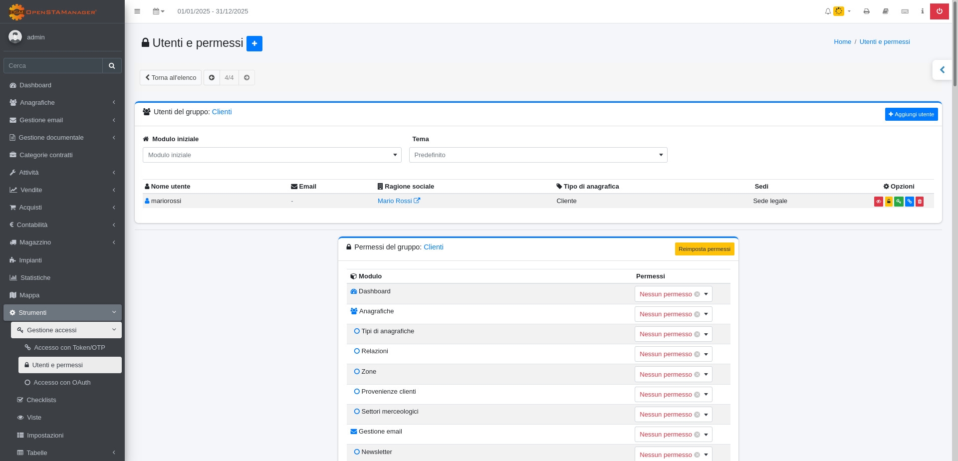 Per creare un nuovo utente a cui assegnare la tipologia utenti appena creata, si dovrà cliccare su Aggiungi utente.