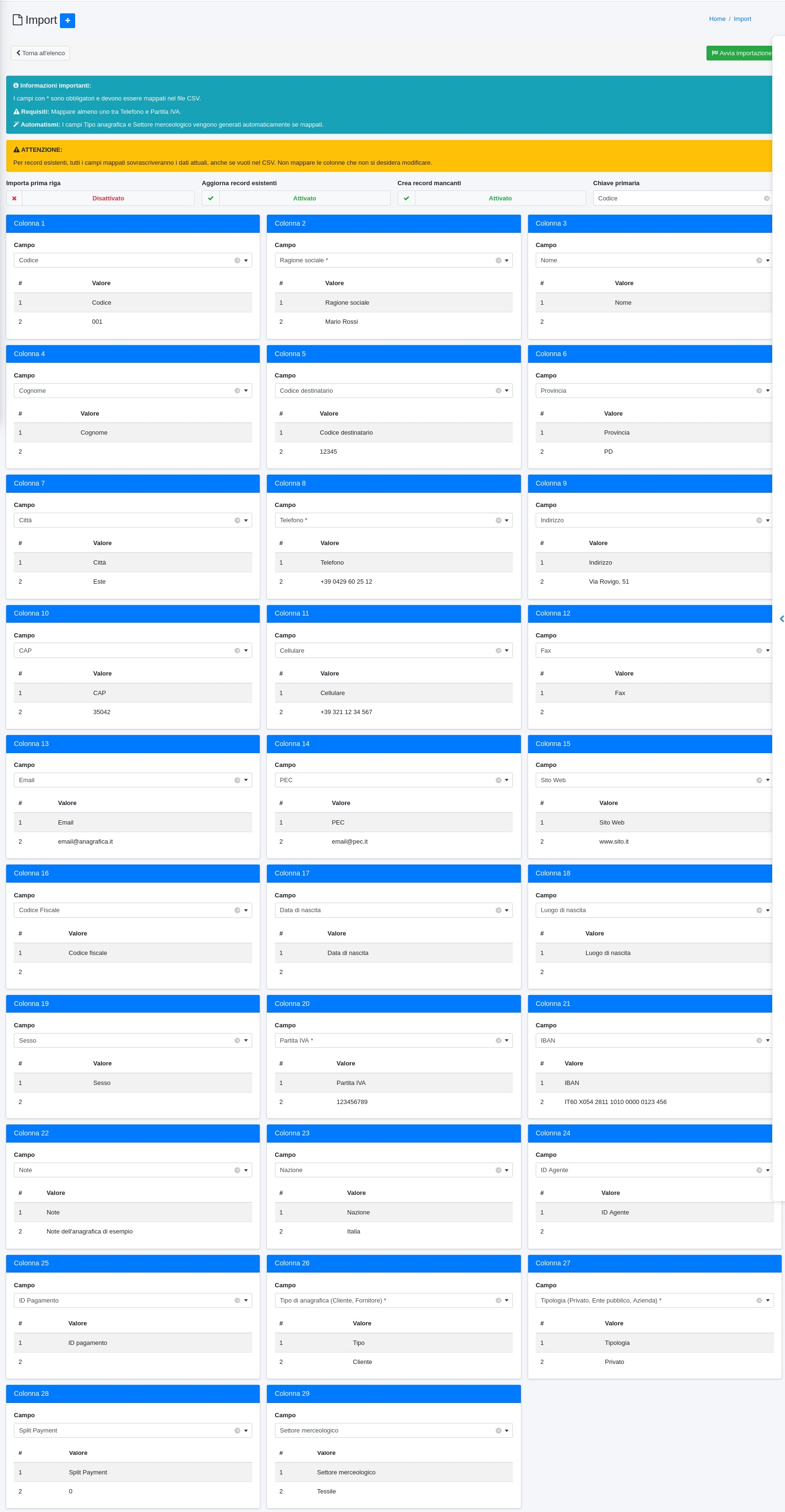 • mappare i campi del file CSV con quelli di OpenSTAManager