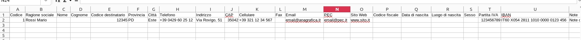 A questo punto si può iniziare a creare il file CSV per l'importazione delle anagrafiche, seguendo la base del file d'esempio.