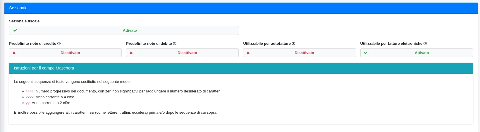 Se il sezionale creato sia un sezionale fiscale (i documenti in esso facciano parte dei documenti fiscali)
