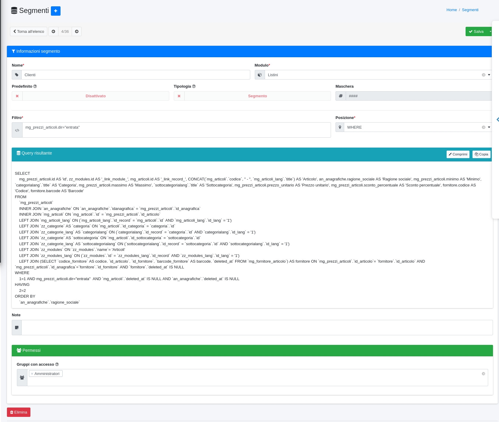 Come gestire i segmenti in OpenSTAManager