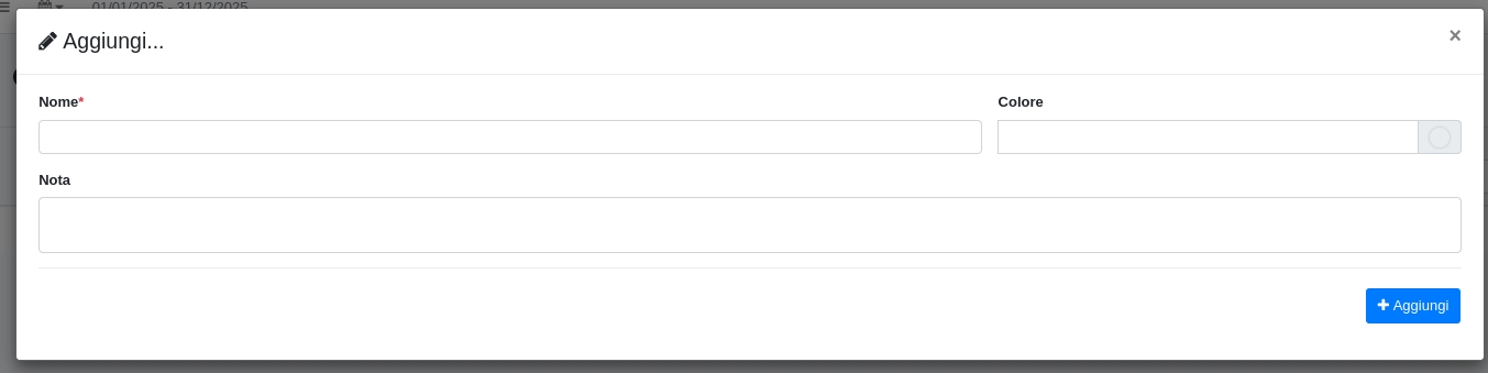 Dalla modal sarà ora possibile definire il Nome, colore e nota da associare alla nuova categoria contratti, e successivamente cliccare su Aggiungi