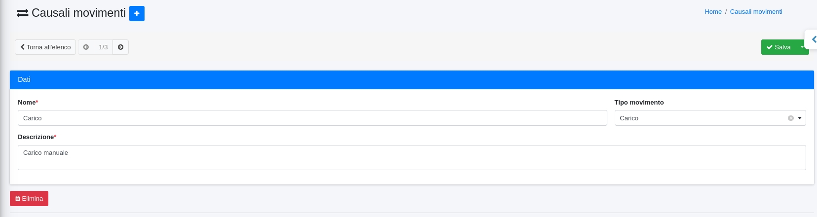 Andranno qui inserite le informazioni relative alla nuova causale movimento da creare: