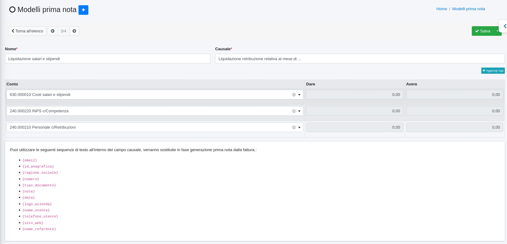 Per creare un nuovo modello di prima nota si dovrà cliccare il tasto (+).