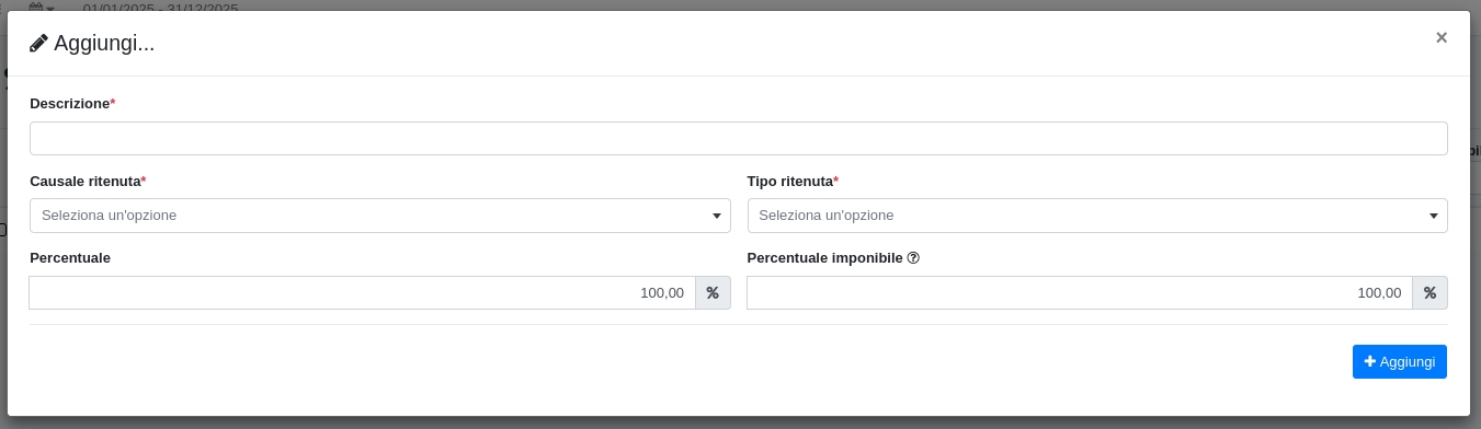 Andranno qui inserite le informazioni relative alla nuova ritenuta da creare: