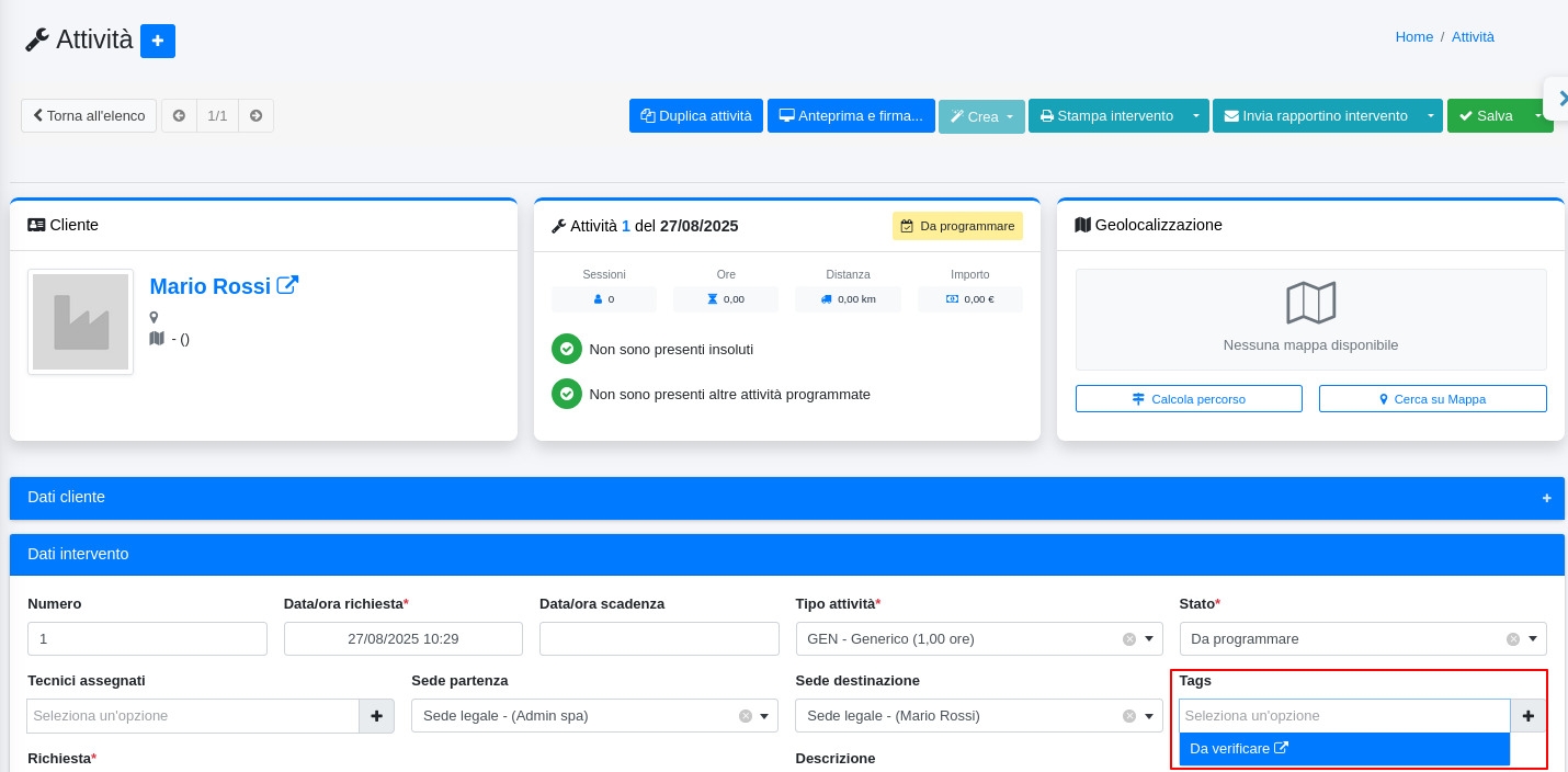 Questo tag sarà ora disponibile da selezionare nell'apposito menu a tendina delle attività