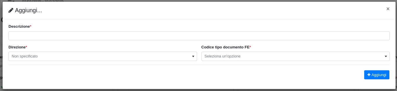 Per creare un nuovo tipo di documento si dovrà cliccare sul tasto (+).