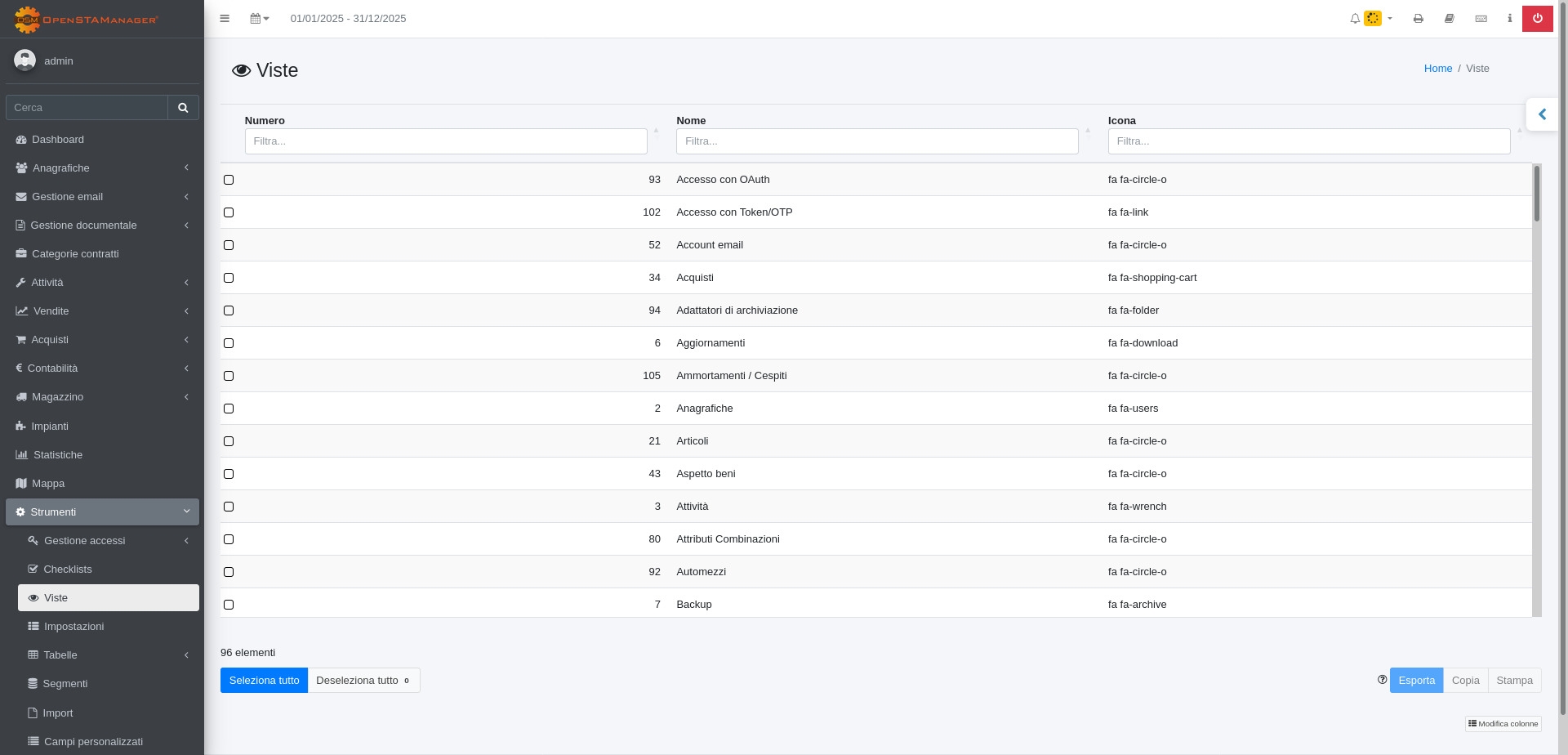 |date_period(co_documenti.data)|: viene sostituito con "AND WHERE co_documenti.data BETWEEN "data_inizio" AND "data_fine". "data_inizio" e "data_fine" vengono valorizzati in base al filtro di date selezionabile dal menu in alto a sinistra __