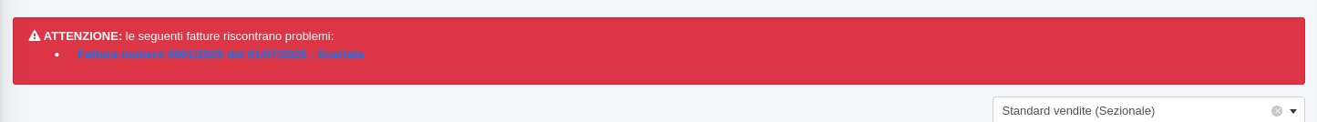 Nel caso siano presenti delle fatture di vendita generate ma non ancora inviate (entro i 12 giorni dalla scadenza per inviare le fatture allo SDI), verranno segnalate dal gestionale con un avviso nella sezione fatture di vendita.