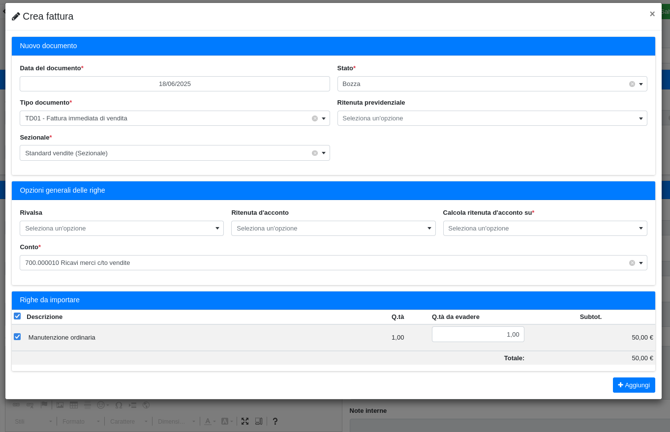 se aggiungere le righe dei preventivi selezionati a una fattura di vendita in bozze dello stesso cliente