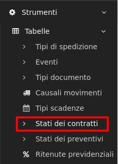 Lo stato dei contratti è verificabile in Strumenti/Tabelle/Stati dei contratti.