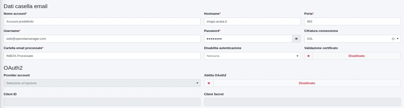 Cartella mail processate (cartella dell'account email dove verranno archiviate le email processate)