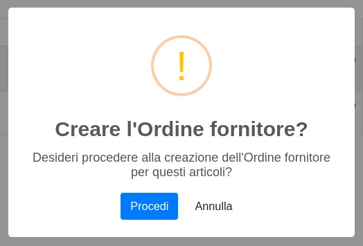 Per procedere a creare un nuovo ordine fornitore si dovranno selezionare gli articoli interessati e cliccare su Crea ordine fornitore.