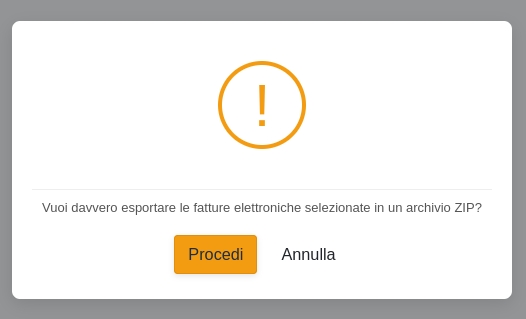Con questa operazione è possibile esportare i PDF delle stampe delle fatture elettroniche selezionate in un file ZIP
