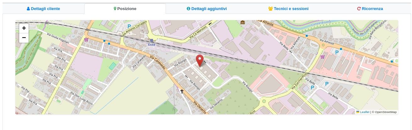 Nella sezione Dettagli cliente vengono visualizzati i Contratti, Preventivi e Fatture attivi per il cliente selezionato, e vengono visualizzate le note interne.