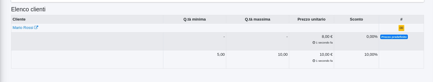 Per aggiungere un nuovo listino cliente si deve selezionare un cliente e cliccare su Prezzi.