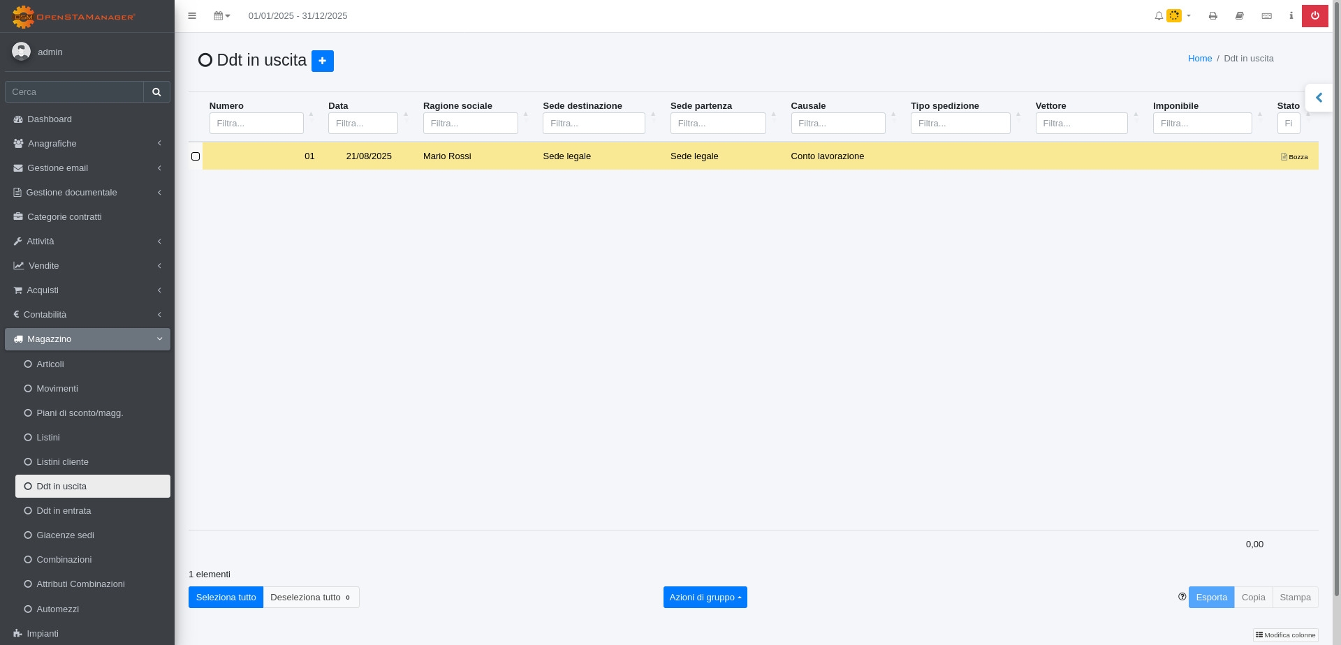Per creare un nuovo DDT in uscita si dovrà cliccare sul tasto (+).