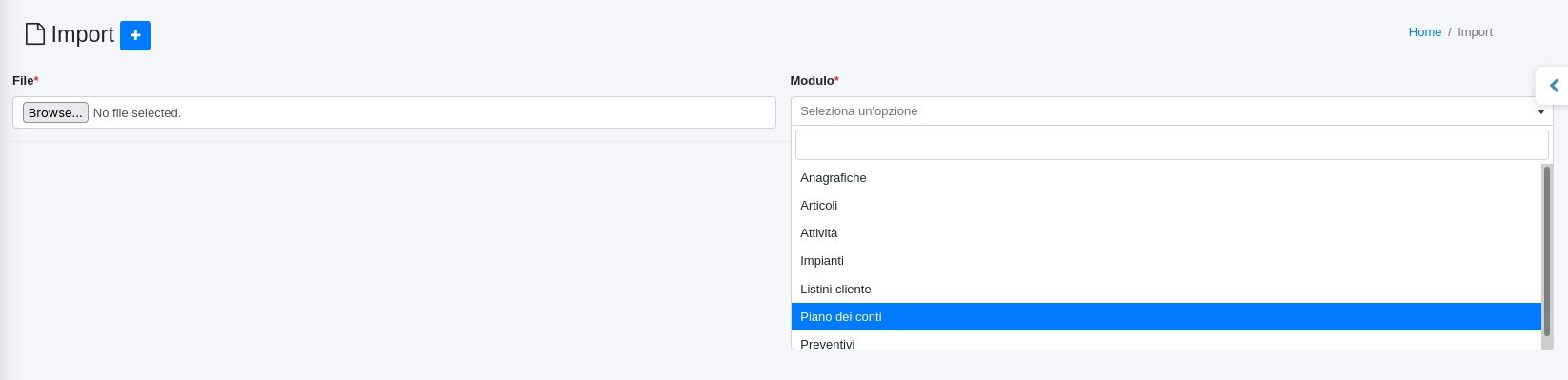 Cliccando su il file viene importato nel modulo specificato.