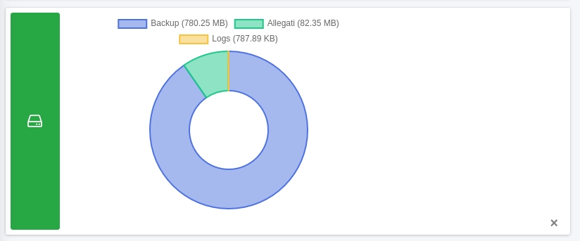 In questo widget è possibile visualizzare lo spazio occupato da Backup, Allegati e Logs.