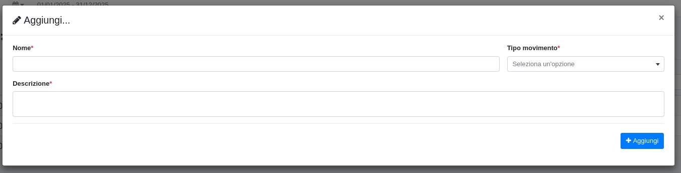 Andranno qui inserite le informazioni relative alla nuova causale movimento da creare: