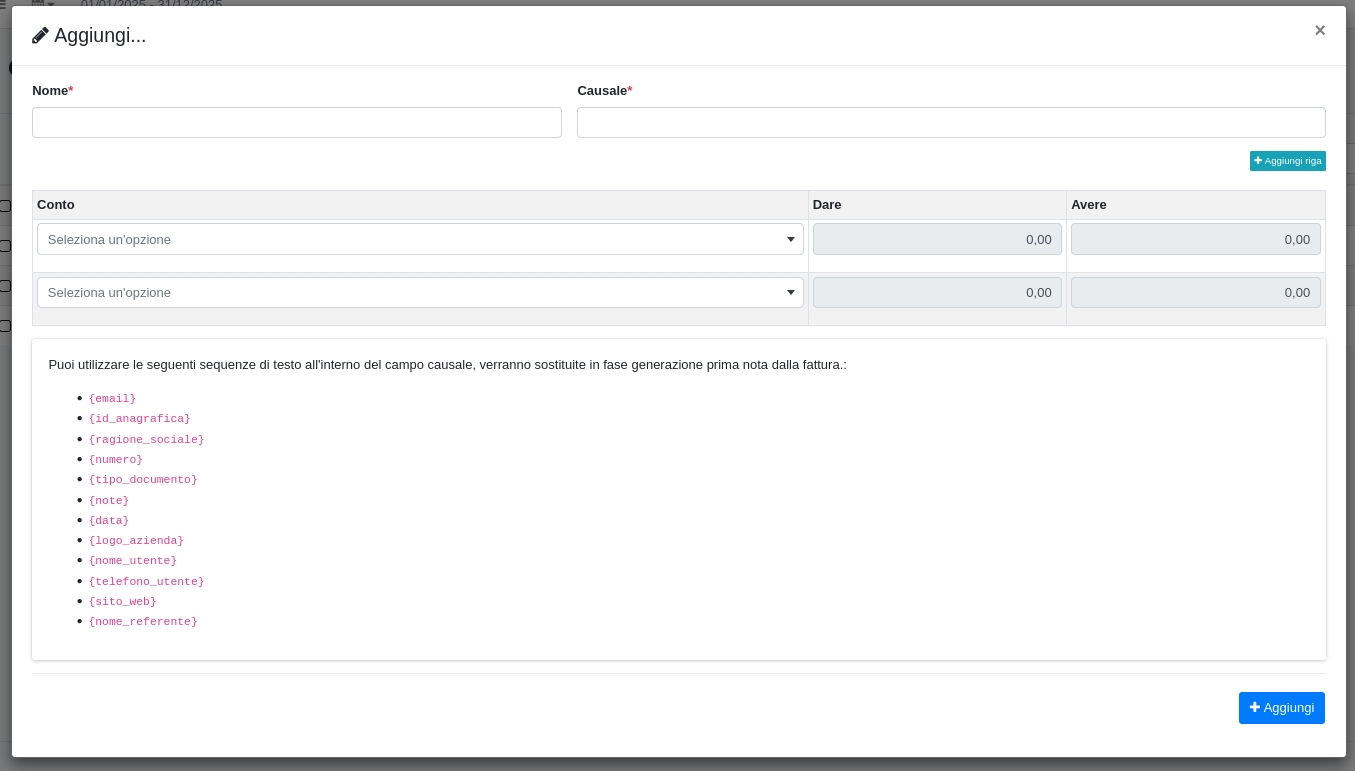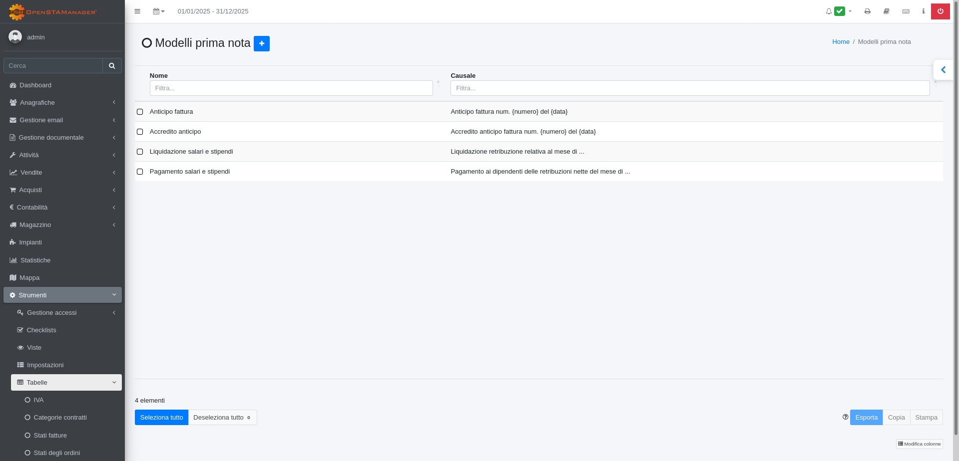 Per creare un nuovo modello di prima nota si dovrà cliccare il tasto (+).