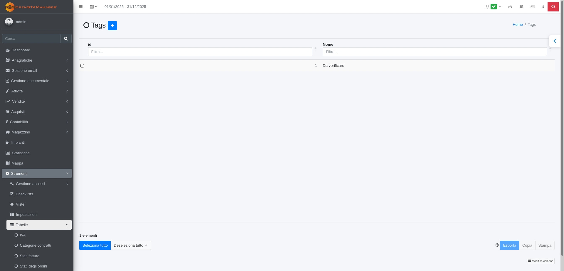 Da questo modulo è possibile definire dei tags da associare alle Attività.