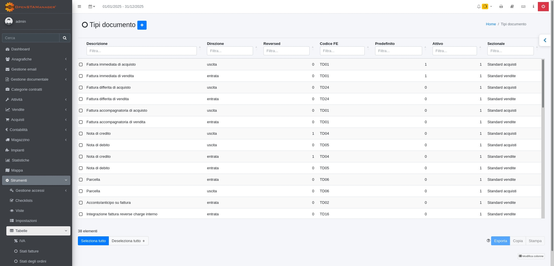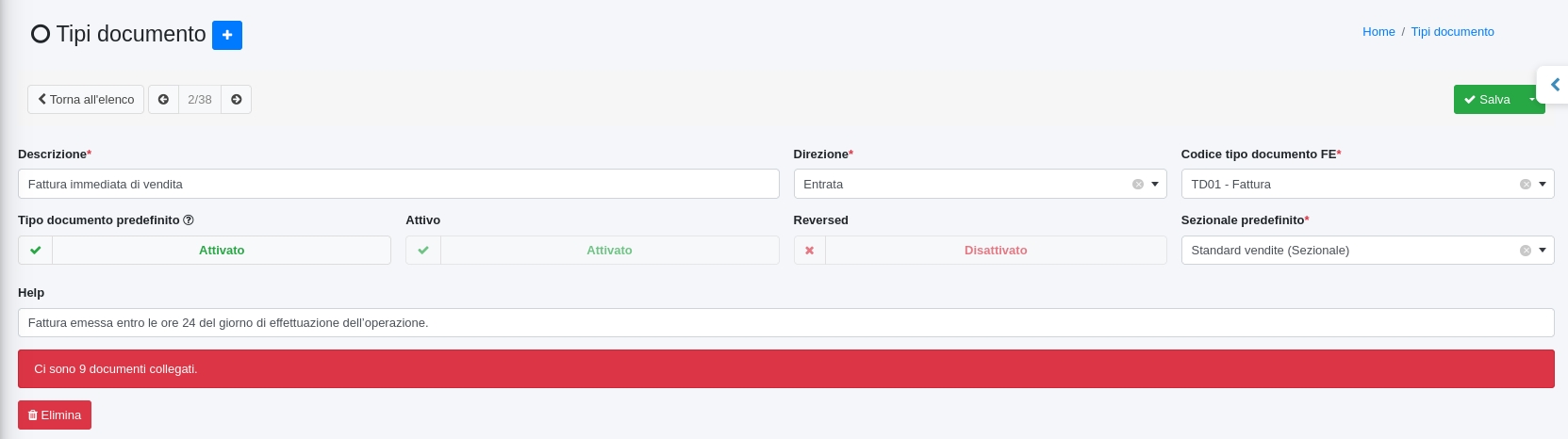 Per creare un nuovo tipo di documento si dovrà cliccare sul tasto (+).