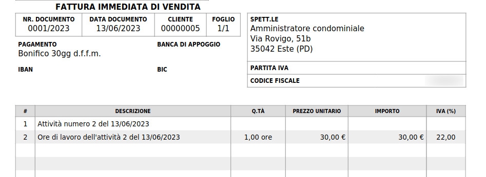 Ad esempio, nel caso di interventi di manutenzione eseguiti in un condominio dove il committente è il condomino ma a saldare la parcella sarà l'amministratore condominiale, si dovrà creare un'attività con il condomino come cliente, e valorizzare il campo 'Per conto di' con i dati dell'amministratore.