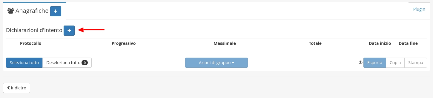 Cliccando sul tasto (+), si avrà quindi accesso al form dove inserire i dati relativi alla Dichiarazione d'intento da aggiungere.
