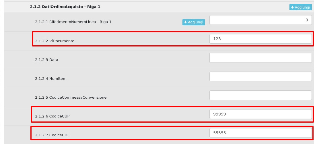 Si dovrà inoltre cliccare su Attributi avanzati e andare a inserire l'IdDocumento e a valorizzare almeno uno dei due campi CodiceCUP e CodiceCIG.