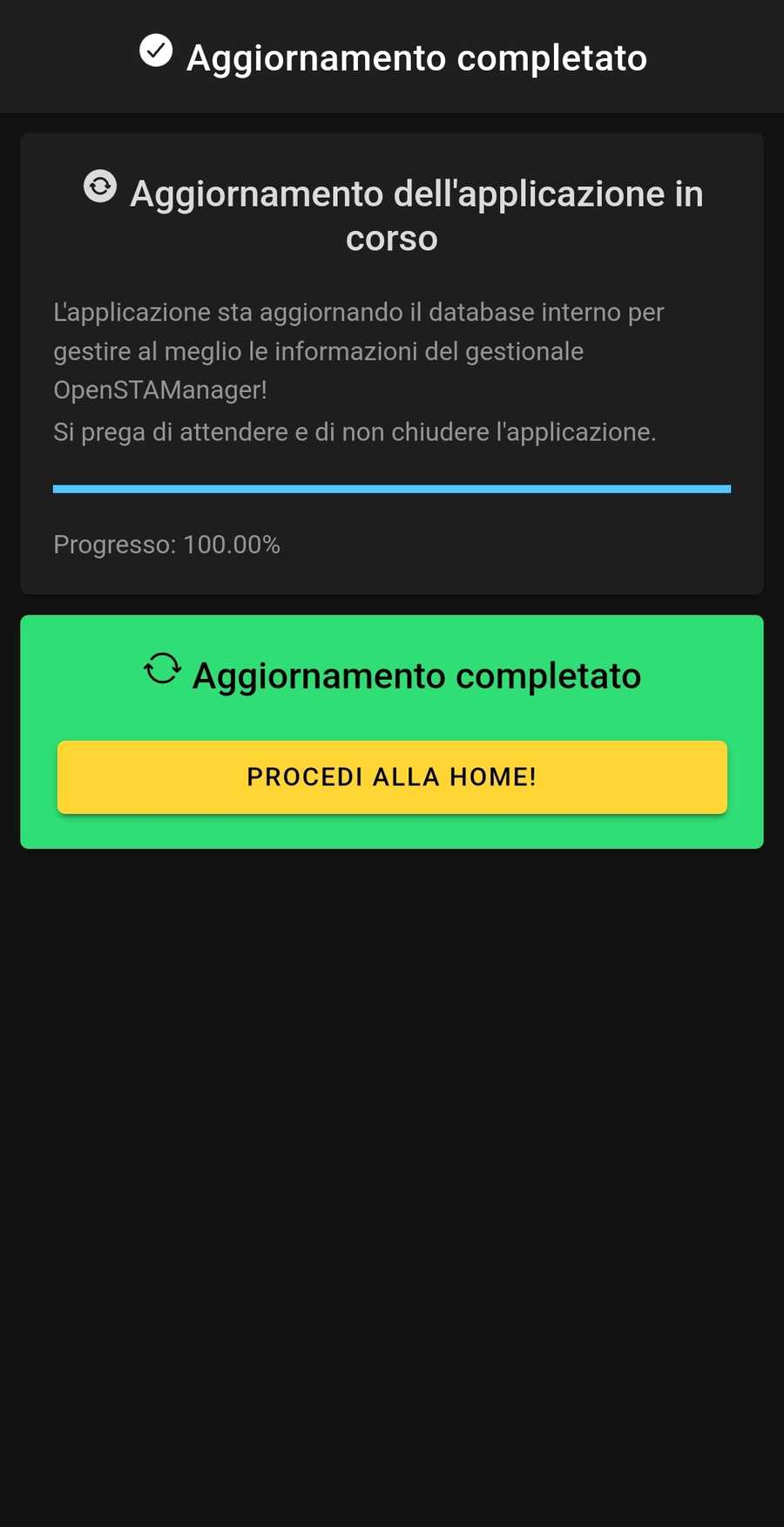 Una volta effettuato l'accesso l'app controllerà la disponibilità di aggiornamenti: