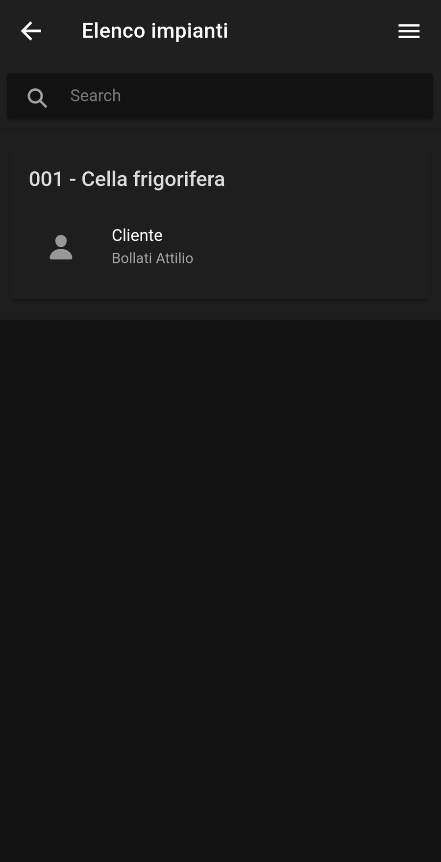 Da questo modulo è possibile visualizzare l'elenco degli impianti che hanno il tecnico impostato come tecnico predefinito