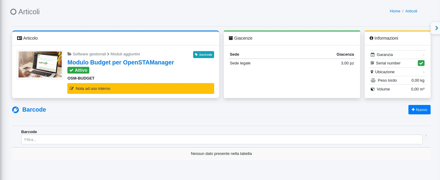 Da questo plugin è possibile definire i barcode associati a un determinato articolo