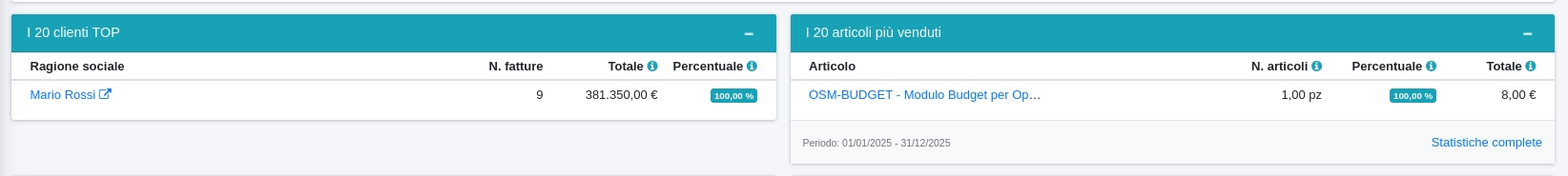 I 20 clienti TOP e articoli più venduti per il periodo selezionato