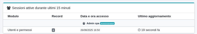 Da questa sezione è possibile visualizzare gli accessi degli utenti negli ultimi 15 minuti