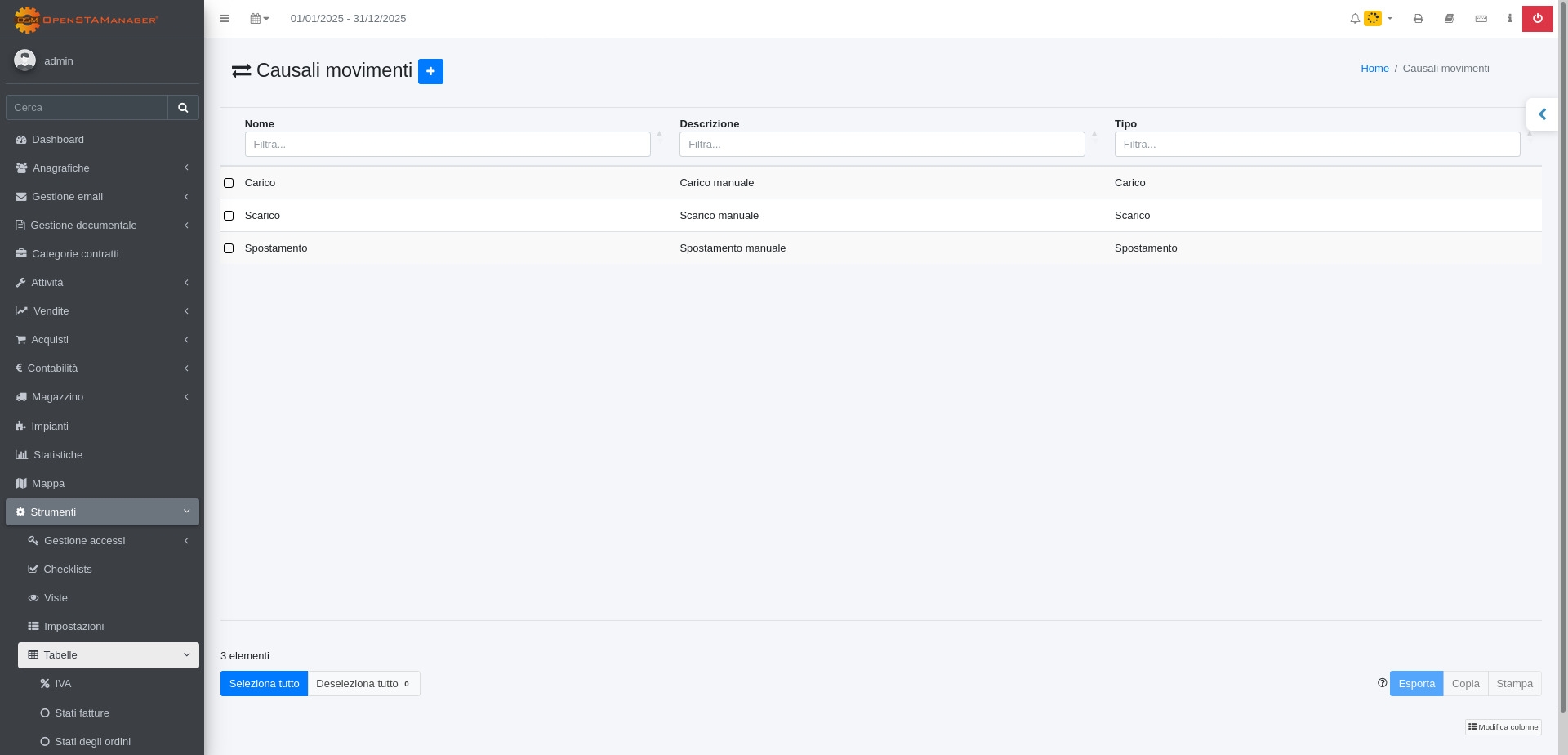 Per creare una nuova causale movimento si dovrà cliccare sul tasto (+).