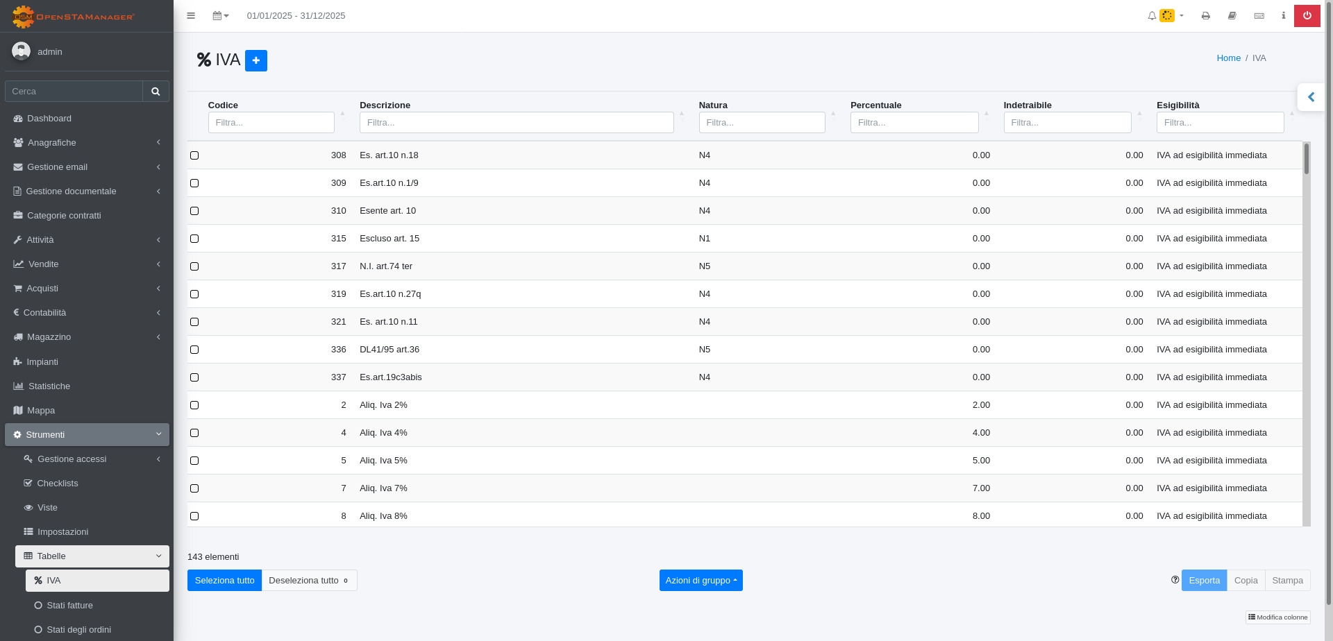 Per creare una nuova aliquota IVA si dovrà cliccare sul tasto (+).