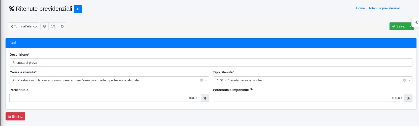 Andranno qui inserite le informazioni relative alla nuova ritenuta da creare: