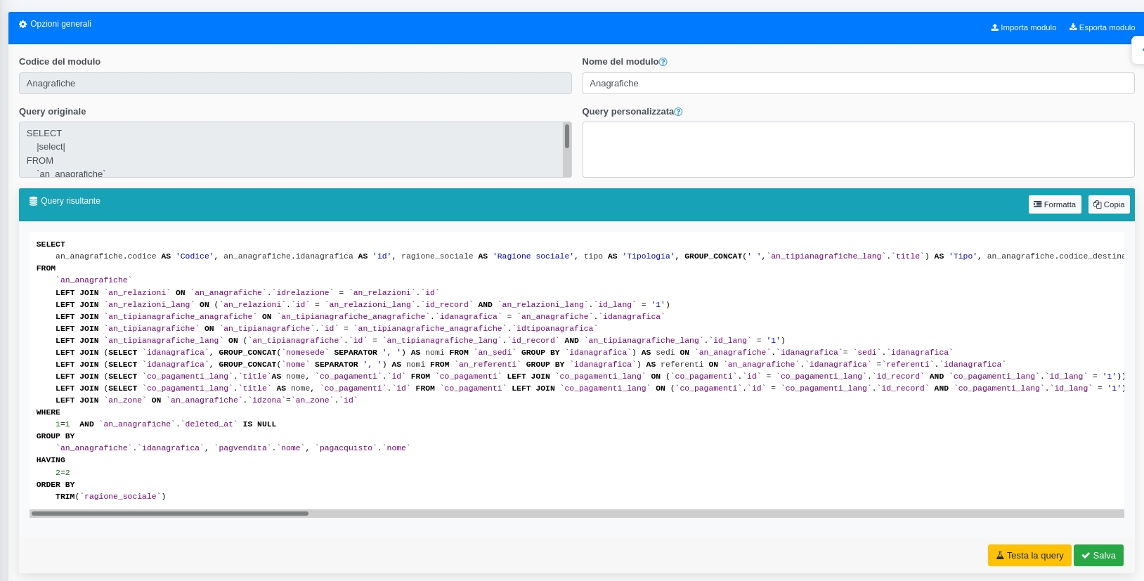 Query personalizzata (scrivere una query in sostituzione a quella di default)