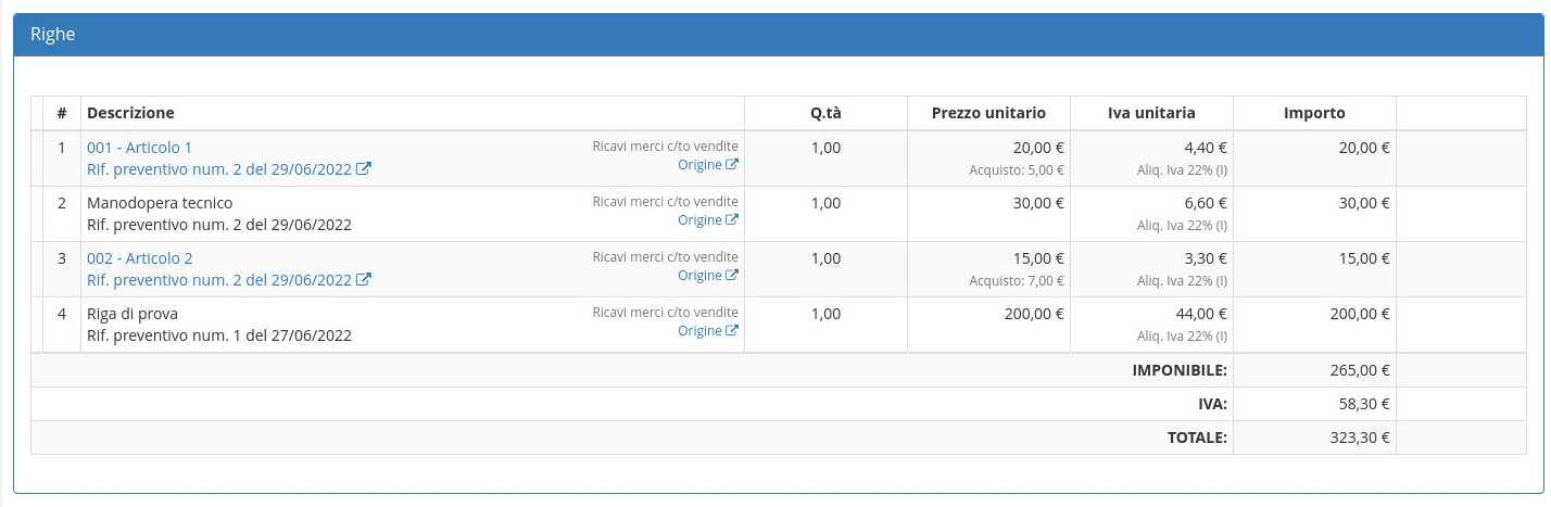Sarà ora possibile visualizzare la fattura di vendita appena creata nel modulo Vendite/Fatture di vendita.
